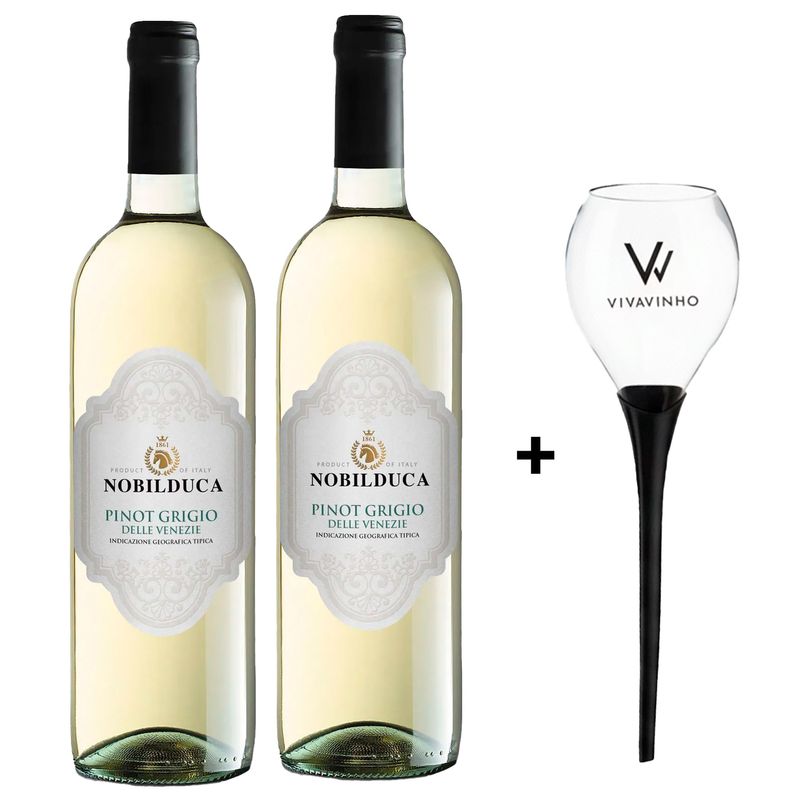 KitsUvasPinot GrigioKit 2 Vinhos Brancos Italianos Nobilduca Pinot Grigio DOC + 1 Taça de Praia