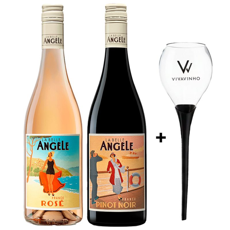 Kit 2 Vinhos Franceses La Belle Angèle Rosé e Pinot Noir + Taça de Praia