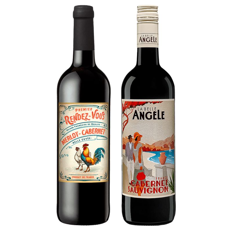 Kit 2 Vinhos Franceses Rendez Vous Merlot Cabernet/ La Belle Angèle Cabernet