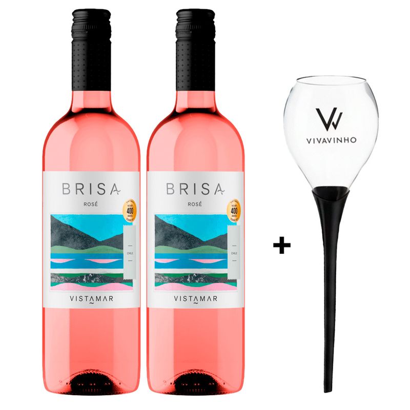 Kit 2 Vinhos Roses Chileno Vistamar Brisa + 1 Taça de Praia