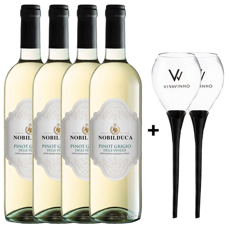 KitsUvasPaísesItáliaPinot GrigioKit 4 Vinhos Brancos Italianos Nobilduca Pinot Grigio DOC + 2 Taças de Praia