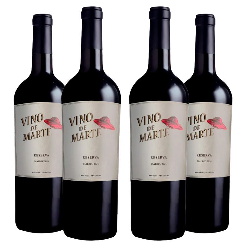 Kit 4 Vinhos Tintos Argentinos Vino de Marte Reserva Malbec