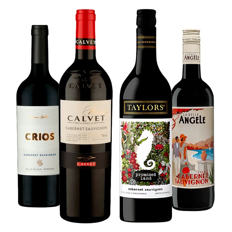 KitsUvasCabernet SauvignonKit 4 Vinhos Tintos Calvet Varietals, Wakefield Promisse, Susana Balbo Crios e La Belle Angèle Cabernet